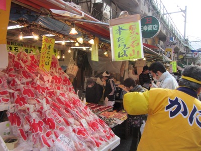 歳末の下町風景として有名なアメ横だが、まだ10時前と早いこともあり、開店準備中で、独特の客寄せのダミ声はない。 |