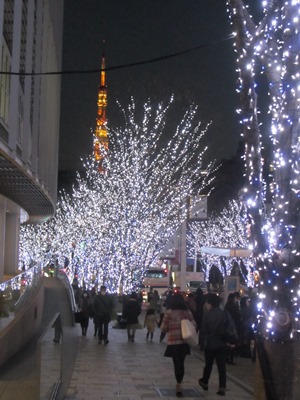 けやき坂下交差点から冬の定番として定着したイルミネーションを見ながら坂を上る。