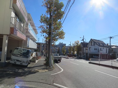 横浜駅根岸道路(市道80号) 御所山交差点の次の無名の交差点で左折
